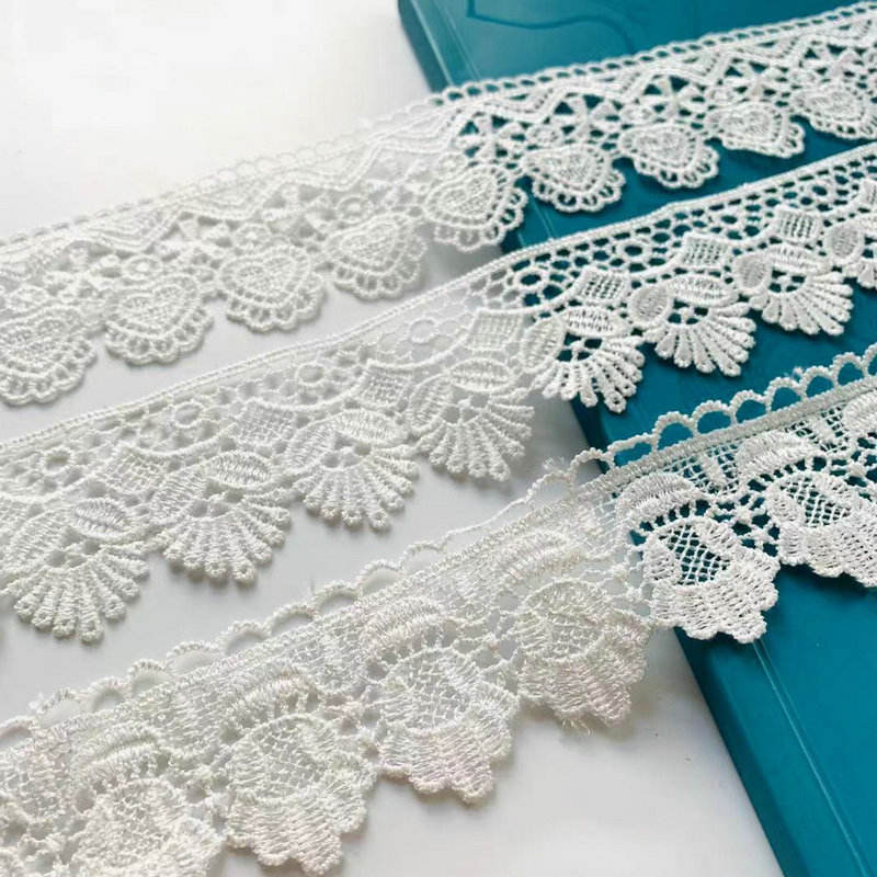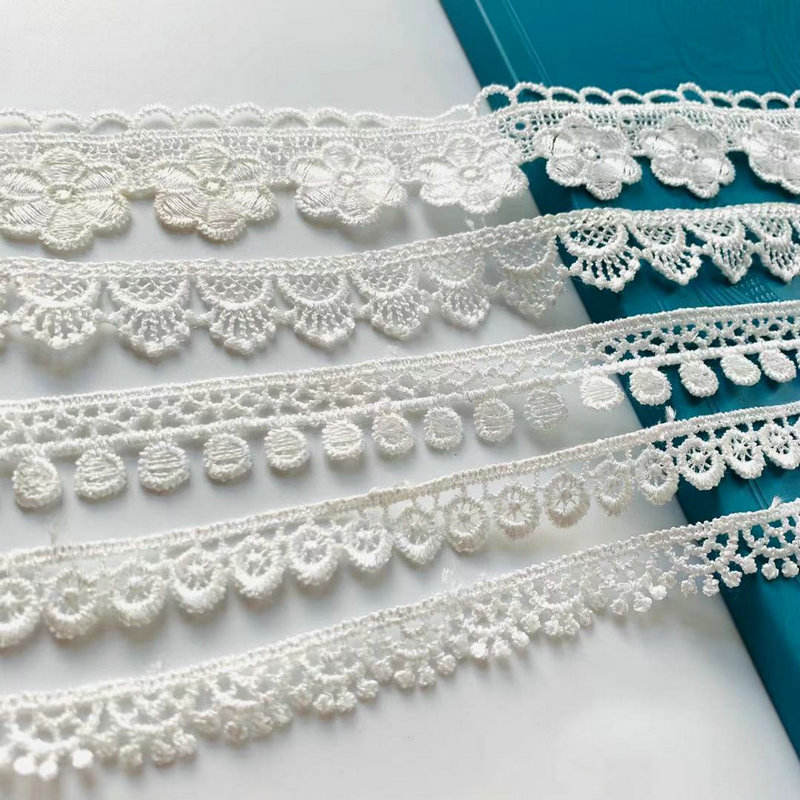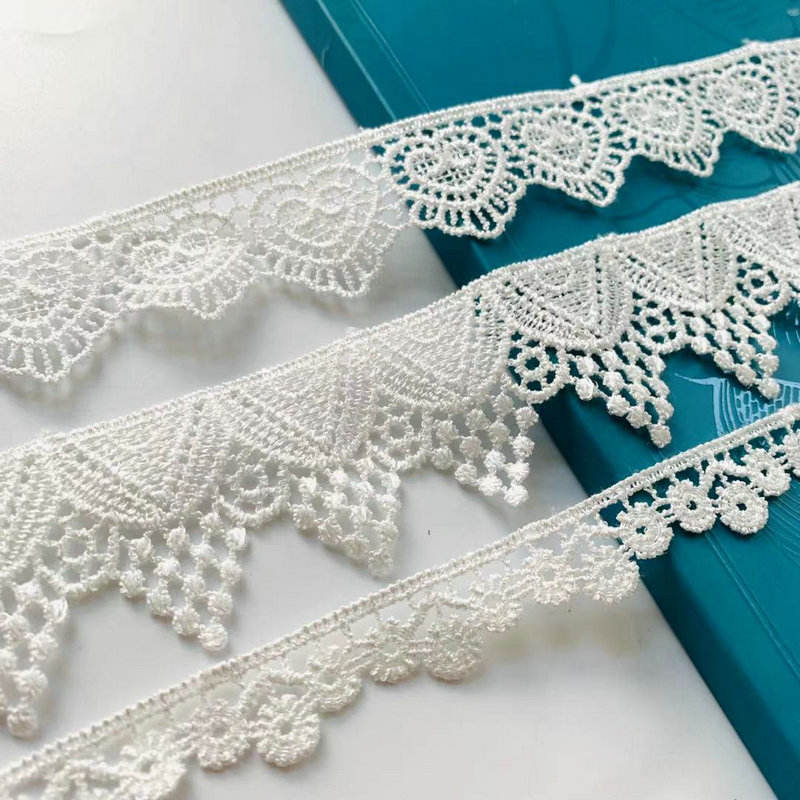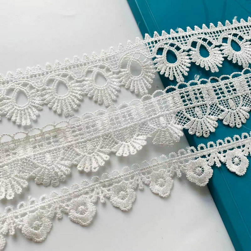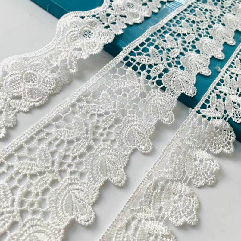Kembang Lace Trim 100% renda kimia pola pola kembang sing apik banget teknik kimia hollow-out kimia nggawe tekstur entheng, alus lan ambegan. Iki cocog kanggo hiasan nganggo sandhangan, tekstil omah, gaun penganten, lan sapiturute, nawakake macem-macem warna lan jembar sing kudu dipilih. Iki bisa dicuci lan awet, lan ndhukung desain sing disesuaikan.