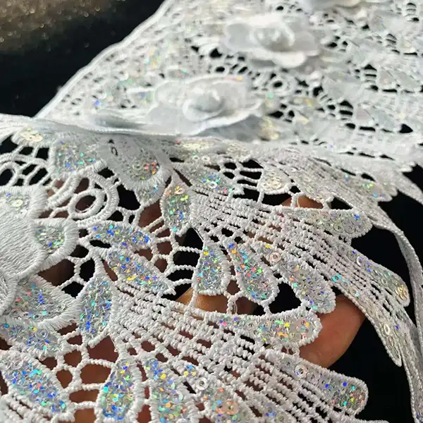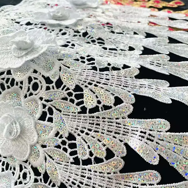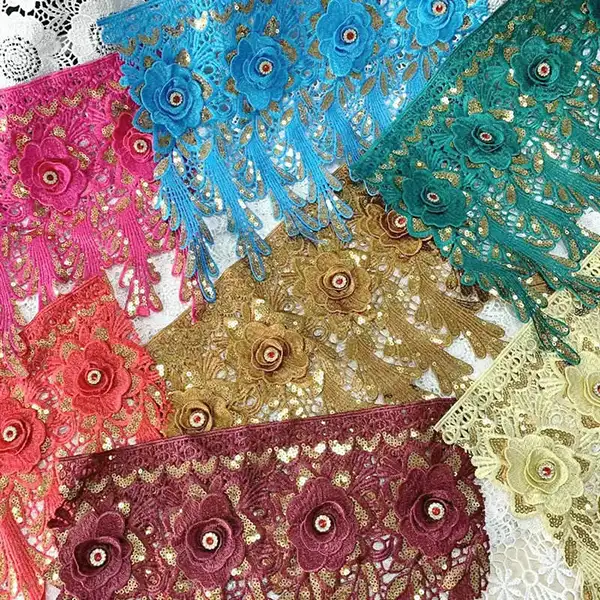 | Jeneng Produk | Grosir Polyester Trim AB Sequins Lace kanthi kembang mawar 3d kanggo sandhangan | ||